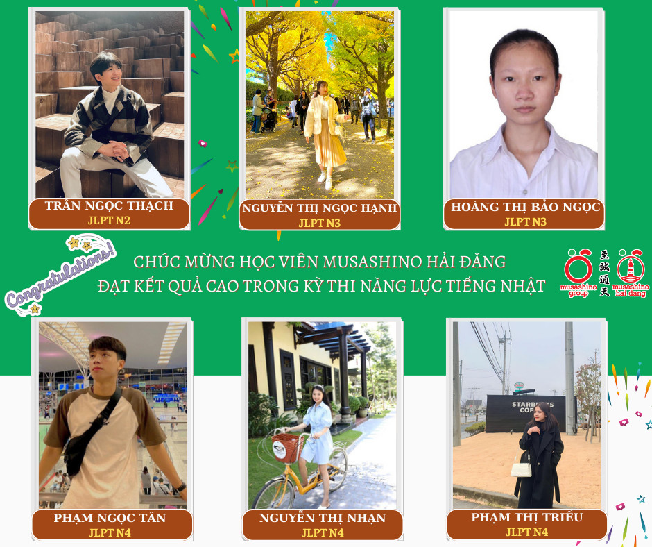CTCP Đào tạo và cung ứng nguồn nhân lực quốc tế – Musashino Hải Đăng xin gửi lời chúc mừng đến các bạn thực tập sinh đã xuất sắc trong kì thi Năng lực Tiếng Nhật JLPT tháng 12/2023. Bạn Trần Ngọc Thạch thực tập sinh khóa HD03 đạt được JLPT N2, một kết quả[…]