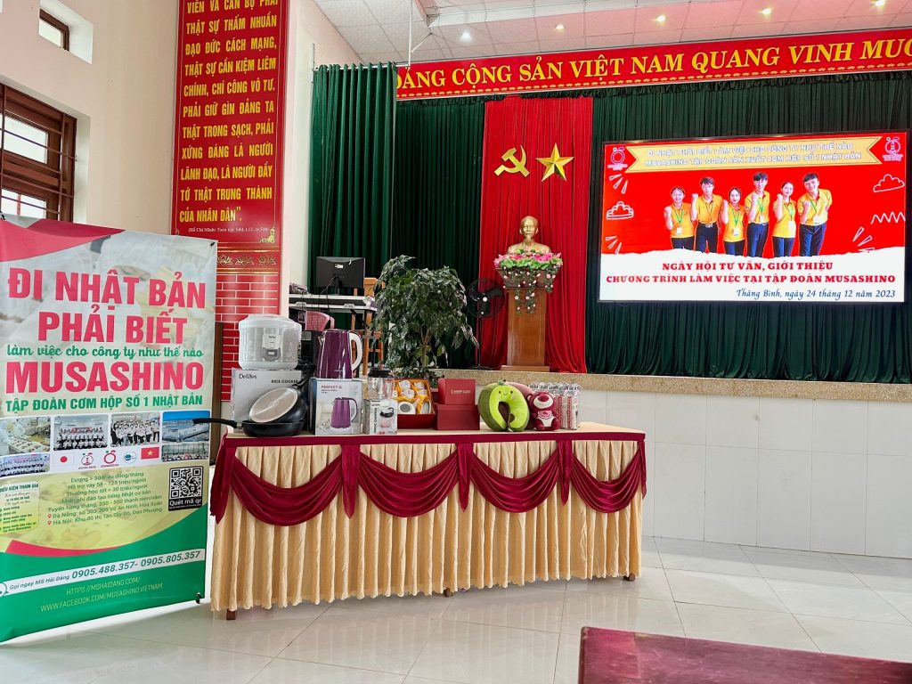 Sáng ngày 24/12/2023 tại Thị Trấn Hà Lam và Xã Bình Quế Huyện Thăng Bình Tỉnh Quảng Nam đã diễn ra chương trình “ Giới thiệu chương trình việc làm tại Musashino Nhật Bản đến thanh niên Huyện Thăng Bình Tỉnh Quảng Nam”.